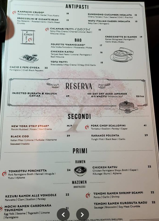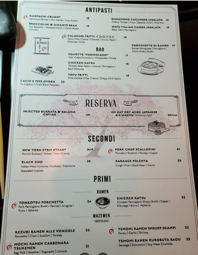 Pasta Ramen was an interesting experience, but overall it didn’t quite live up to the hype for me. The staff was wonderful and incredibly attentive. They even made a vegetarian option for me, which I really appreciated. Their service was definitely the highlight of the night. The food, however, was pretty underwhelming. It mostly tasted like standard Italian dishes with Japanese seasonings sprinkled in. Nothing really stood out or felt especially unique. I was hoping for something more creative or bold in flavor, but everything kind of blended together and lacked that wow factor. The space itself is sleek and modern and it definitely gives off a cool and trendy vibe. But when it comes down to the actual food, I felt it didn’t match the buzz or justify the price. I’m glad I gave it a try, especially with how kind and thoughtful the staff was, but I probably wouldn’t return. It’s worth checking out if you’re curious, but manage your expectations when it comes to the food